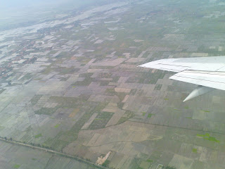 Masuk sahaja ke kawasan dataran di tanah Jawa, selepas sahaja melepasi Jakarta, hujan sudah mula turun, rasanya pilot flight ni terpaksa terbang rendah untuk keselamatan, kelihatan lautan sawah padi di bawah sana