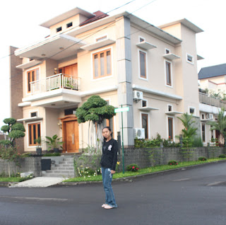 Fatin bergambar di depan Banglo mewah tempat kami menginap di Bandung